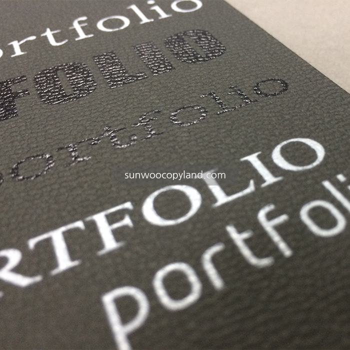 - 검정색과 회색 부띠끄 용지에 화이트 출력으로 각각 한 부씩 제작하셨습니다.