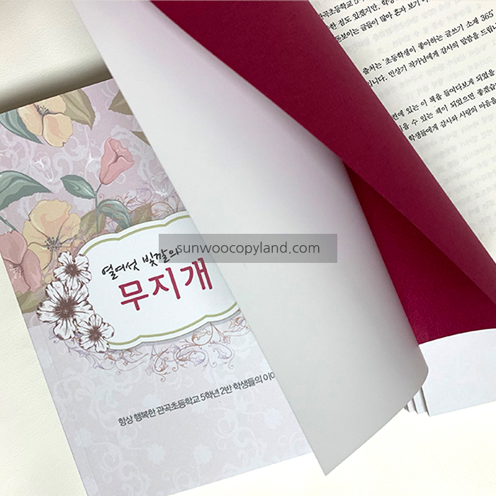 - 표지와 어울리는 색면지를 사용하여 더욱 고급스럽고 화사하게 제작하였습니다.