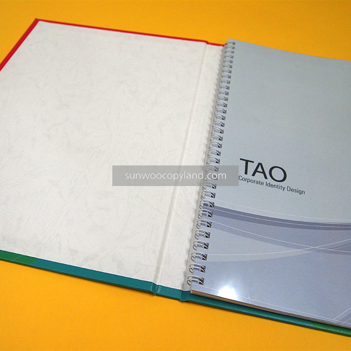 - 하드커버 스프링 제본은 펼침이 용이하여 매뉴얼북 제작시 선호하는 방식입니다.