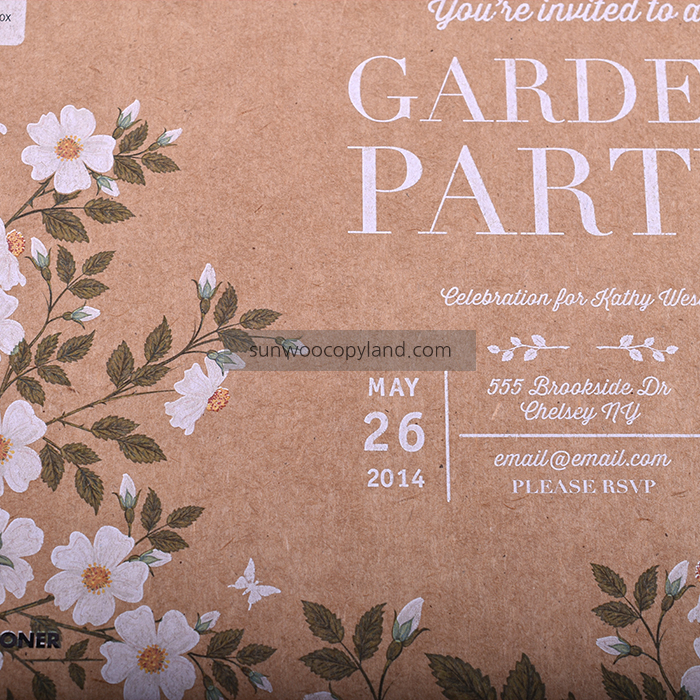 - 크라프트지에 화이트 출력으로 특별한 느낌의 초대장입니다.